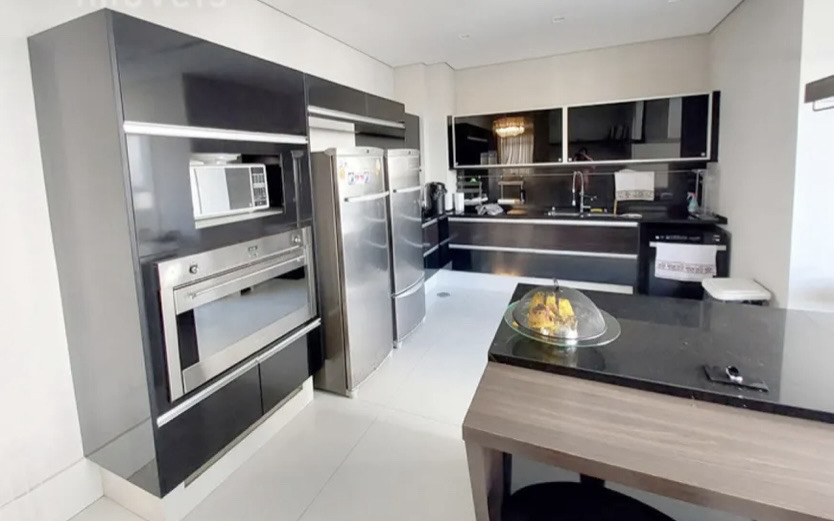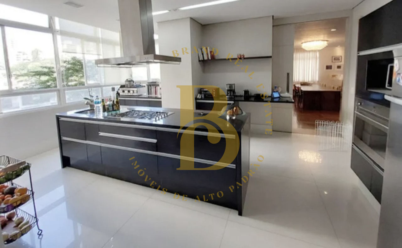 A cozinha, um dos destaques do apartamento, é espaçosa e iluminada, equipada com uma ilha central e duas coifas, perfeita para os amantes da culinária. Na área de serviço, você encontrará uma ótima lavanderia, um dormitório adicional e um banheiro para o funcionário, garantindo praticidade no dia a dia.