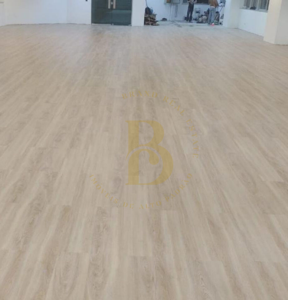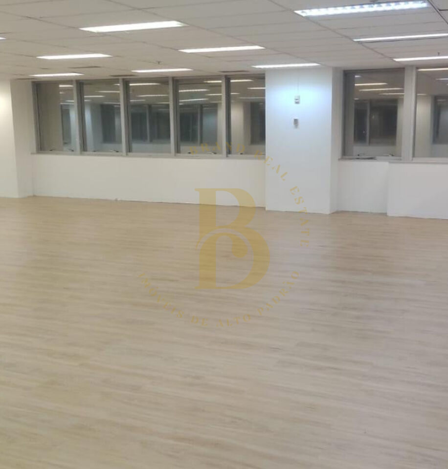Andar comercial amplo no Brooklin, com 457m² de área total, ideal para empresas que buscam espaço versátil e bem localizado. O ambiente possui layout aberto, com piso em madeira clara, forro modular com iluminação embutida e amplas janelas, que garantem excelente iluminação natural e ventilação.